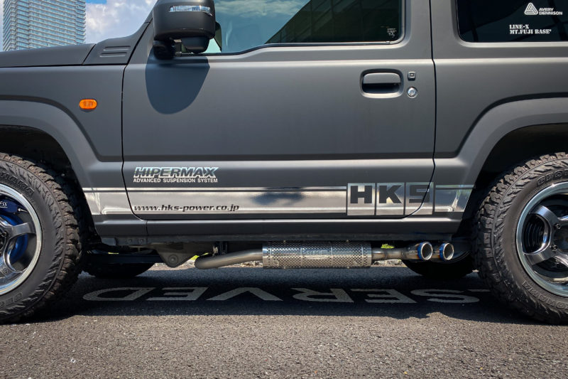 こちらのデモカー、カスタムコンプリートカーとしてオートバックスが販売している車両なのだと思いますが、最近のカスタムカーの特徴としてサイド出しマフラーが光っていました。確か近年車検の規制が緩くなったとかで、昔は車検非対応だったサイド出しマフラーがこうして普通に出回るようになったんですよね。これで爆音だったら歩行者はびっくりしてしまいそうですが。