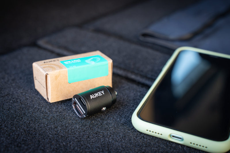 これまでもANKERのものは愛用してきたのですがそちらはUSB TYPE-Aが2ポートでUSB TYPE-Cには非対応、今回はUSB TYPE-AとTYPE-Cがそれぞれ1ポート合計2ポートのデザインです。USB TYPE-Cは規格上最大100Wまでの電力供給を許容していますが、このモデルは最大30Wまでをカバーしています。iPad Proの充電なら十分対応出来ますし、MacBook Proでも多少時間をかければ充電出来ますからこれ一つあれば車内で最低限の電源が確保できるのです。