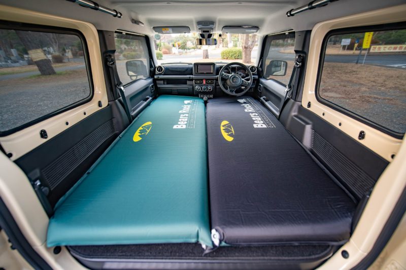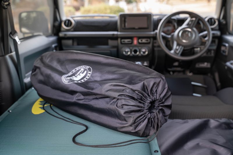 一時はコールマンの ”キャンパーインフレーターマットハイピーク・シングル” の購入を検討しましたが、あちらは1枚のサイズが大きすぎてジムニーには入らないため、結局このマットに落ち着いた感じ。でも結果的にはこの剛性感の高いマットが今はお気に入りです。