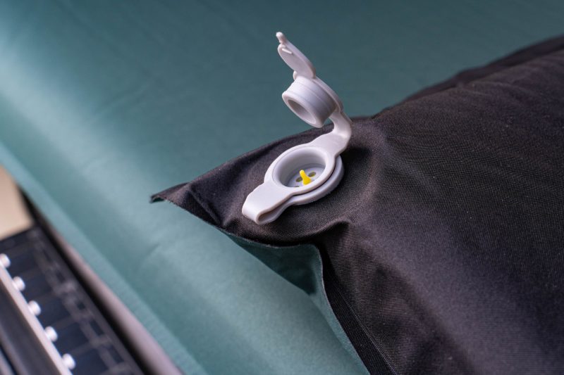 広げる際は吸入バルブを開けるだけで内部の高反発ウレタンが膨張しベッドサイズにまで広がりますが、寒い時期や急いで広げたいときはバルブから息を吹き込んで強制的に空気を入れます。