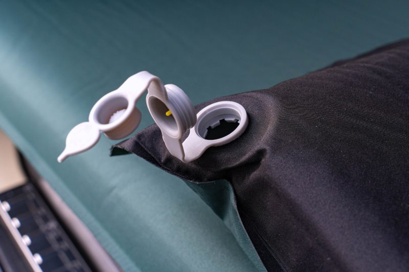 それでいて、一気に空気を入れたい時や逆に空気を抜きたいときは二重のバルブを全て開ければ大径の開口部が現れこれまた効率が良いのです。心配なのはこのバルブの2重蓋が細いゴムで繋がっているだけなので、誤って強く引っ張ったりするとキャップがちぎれてしまわないか?という事。それだけは気をつけて使う必要がありますね。