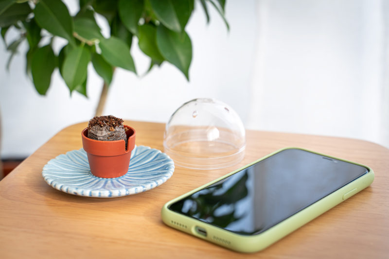 おなじみの丸いプラスチックケースを開けると極小の植木鉢と植物の種とカチカチに固まった土が入っており、土に水を掛けるとその体積は数倍に膨れ上がり植木鉢の高さ以上に盛り上がります。とはいえもう少し上手い植え方があるような...。入っていたのは青じその種なので発芽して順調に成長すればすぐにこの植木鉢では小さくなるでしょうからその時植え直せば良さそうですね。