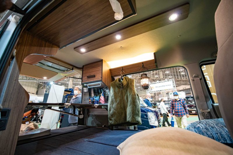 居住空間と充実装備という観点で言えば大きなキャンピングカーに分があるのは重々承知していますが、普段使いも兼ねた ”足” としての車のポジションと、旅先で気軽にコンビニにも立ち寄れるボディサイズにアドバンテージがあるという点から、私は軽自動車規格のキャンピングカーにその可能性を感じるんですよね。このイベントで見てきた多くは軽キャンパー。