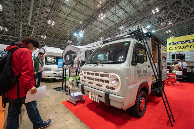 会場内で軽キャンパーを見つけるとその多くがスズキ・エブリィをベース車両に使っていることが分かります。発売当初の人気ぶりを思えばホンダN-VANがもっと多いかと思いましたけどね、殆ど見なかったように思います。