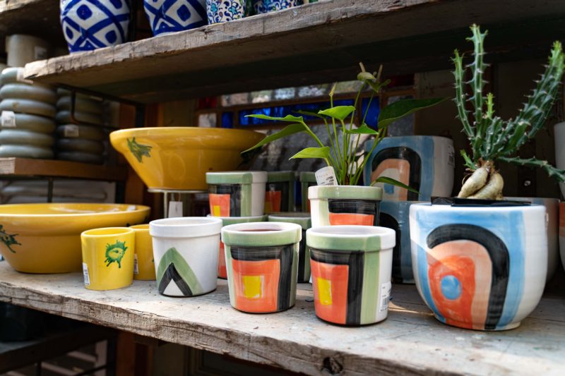 春らしいハイカラな植木鉢も並んでいました。著名な画家の作品です!っていうお値段だったので購入には至りませんでしたが。