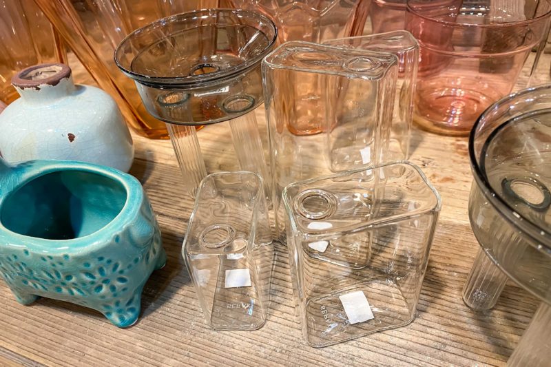 こちらも少し気になったガラス容器。3つ並んだもののうち一番手前のものがトテモ魅力的。すぐに使いみちが思い浮かばなかったので購入には至りませんでしたが、直径10cmくらいで高さが15cmくらいなのでリビングや窓辺にちょこんと置いてプランツを育てるなら丁度良いサイズ感。30%OFFセール中だったので購入はかなり悩みましたけどね、私以外にもたった一つの在庫を狙っているお客さんがいましたし。