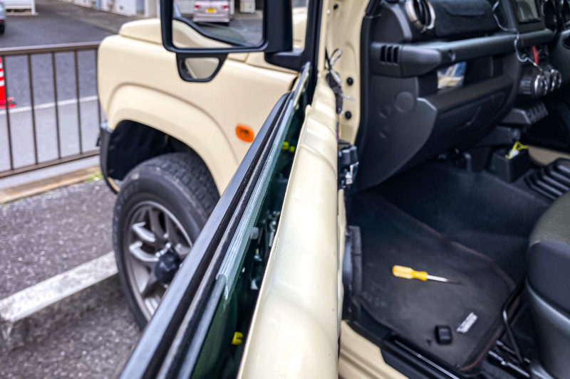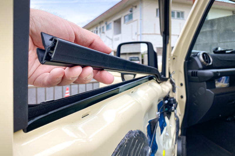 愛車ジムニーは現在入院中でありタイムリーではありませんが少し前のこのネタを。ジムニーのドア付近から発せられるビリつき対策もついにここまできた感じ。ドアウィンドウモールの取り替え。