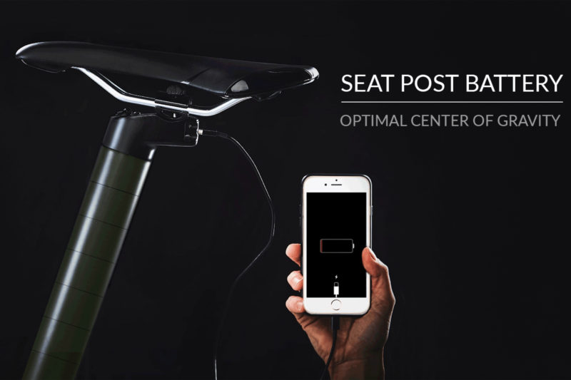 シートポストそのものがバッテリーという発想。最近じゃフレームの中に埋め込むようなモデルが増えつつある中でこちらのアイデアもなかなか良いじゃやないですか。実にスタイリッシュ。