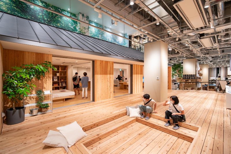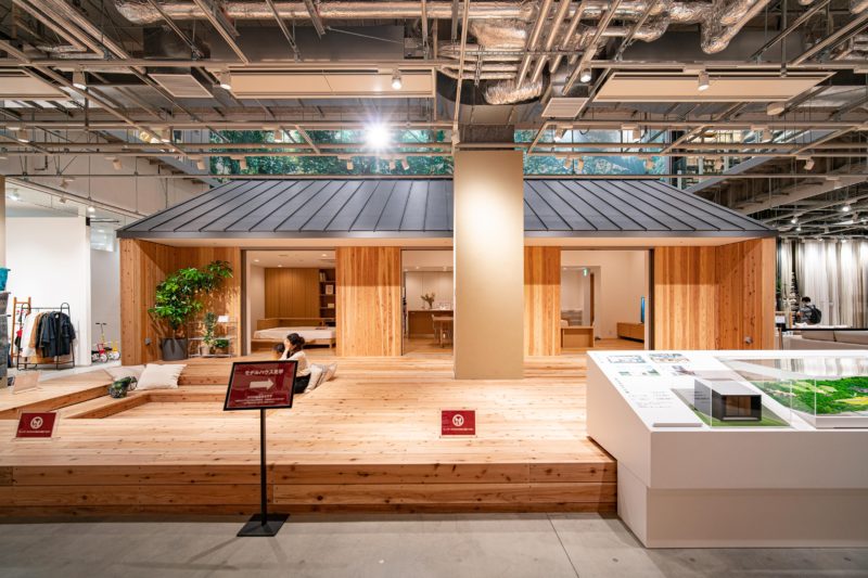 無印良品の東京有明店は規模が大きいので、店内にそのまま家が建っています。無印良品って今は住宅まで作っているんですよね。以前は6畳1間くらいの ”小屋” を販売していましたがいよいよこのスケールまで拡大されたようです。