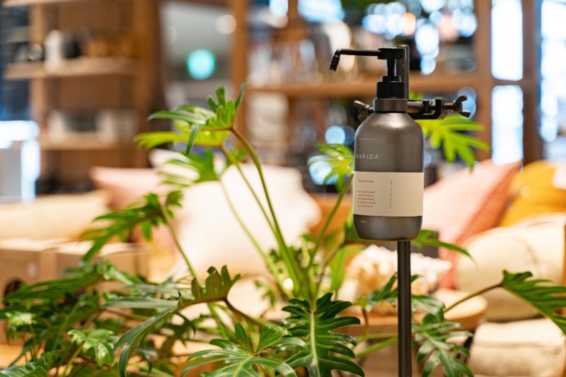 こういうショップですから入り口にあるアルコール消毒も少しお洒落なボトルが使われておりました。これには少し感心しましたね。実用一点張りではなくインテリア雑貨らしいデザインでまとめているあたりにこだわりを感じます。