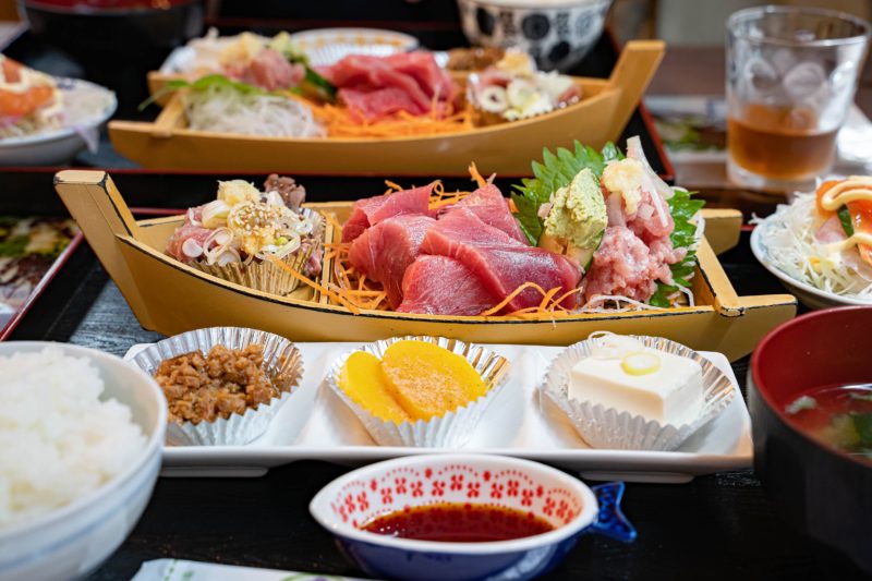 当然他にもマグロを食べられるお店というのはあるのですが、ここ濱田屋さんは島を訪れたときから店頭に行列が出来ておりそれなりの理由があったわけですね。注文したのはマグロ3種盛り定食。かなりのボリュームというだけでなくマグロそのものの品質がとても良く甘みと柔らかさが絶妙。大変満足な昼食となりました。