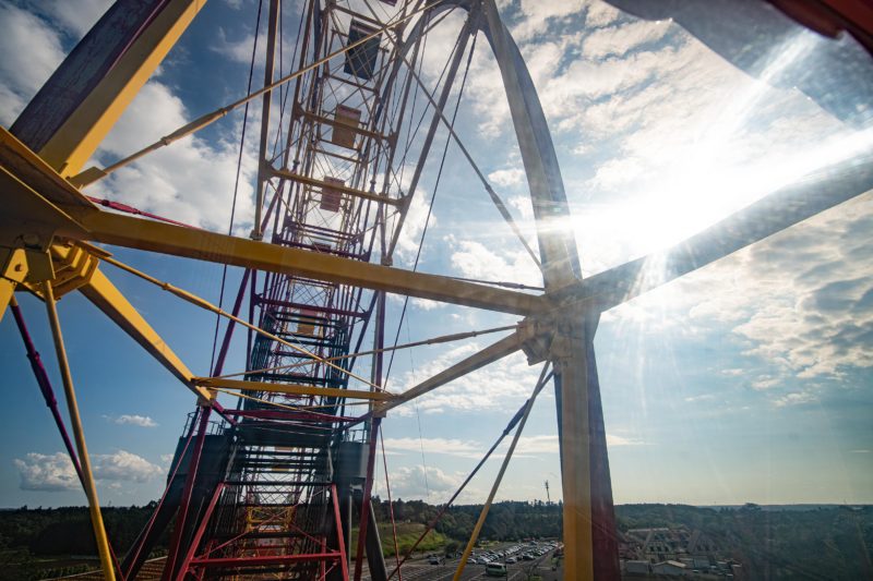 観覧車って太陽光とのコンビネーションが最高な被写体で、そこに特徴的な雲が重なれば写真に撮らずにはいられないですね。この日は10月なのに30℃近い気温でしたが、これを見るだけでもそれが感じられます。
