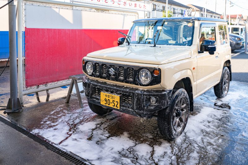 ジムニーの洗車頻度は1ヶ月に1,2回程度。”乗ったら洗う” が基本だったClassic Mini時代を思えば随分サボり気味ですが、それでもこのシフォンアイボリーメタリックというベージュカラーは汚れが目立たないため一見綺麗に見えるのは有り難い誤算。とは言え青空駐車ゆえ雨続きに放置すれば表面のコーティングは落ちやすいわけで、最近は洗車のたびにコーティングを行っています。