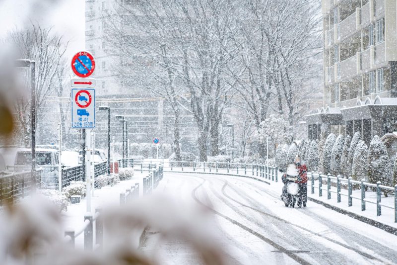 積もったと言ってもたかが数センチの事ですから、私の実家がそうであるように雪国に暮らす人からしたら「なぜその程度の事でニュースになるのか?」と不思議なくらいですが、雪への耐性のない東京にとってはこの程度の雪でも大騒ぎです。我が家から見える道、ピザの配達屋さんはバイクで転んでいましたし、それを恐れバイクを押して歩く人の姿も。賢明ですね。