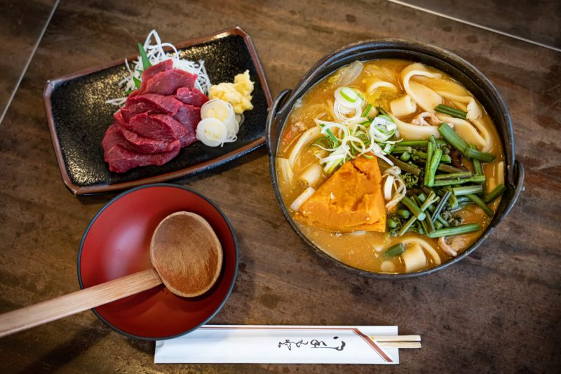 私はこの赤身の馬肉が大好きで、東京ではなかなか口に出来ませんから山梨に来たら絶対に食べたい一品。今日はほうとうと馬刺しをセットで食べられて大満足。