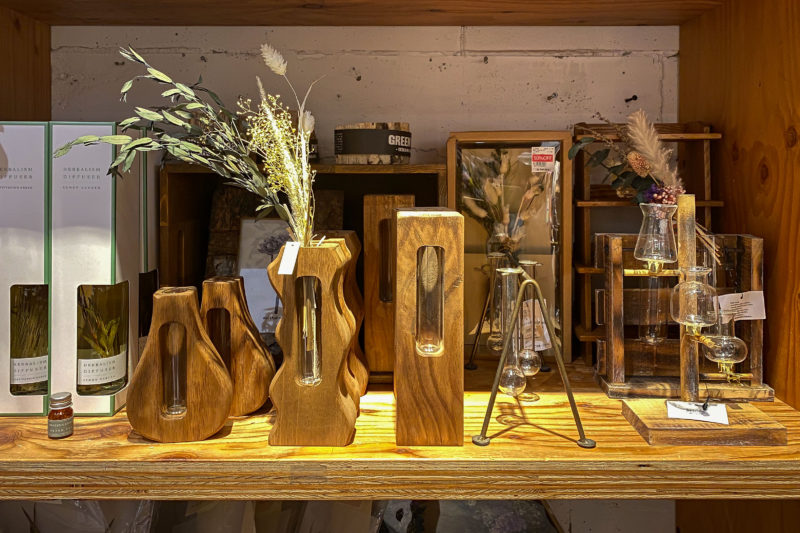 このブログを昔から読んでくださっている方ならお分かりかと思いますが、私は木とガラスの組み合わせが大好き。そこにドライフラワーやエアープランツを添えればもう言うことはないわけで。勿論拘り始めれば、同じウッドでもメープルやブビンガが好み!とか、2つ以上の木目で構成されていたら美しい!とかキリがありませんが、一般的なインテリア雑貨屋さんではそこまでマニアックなものって取り扱いがありませんからね、こういうのは直感で好きか嫌いか、自宅に置いた時他の家具との調和は取れるか?そんなところがポイントになると思います。