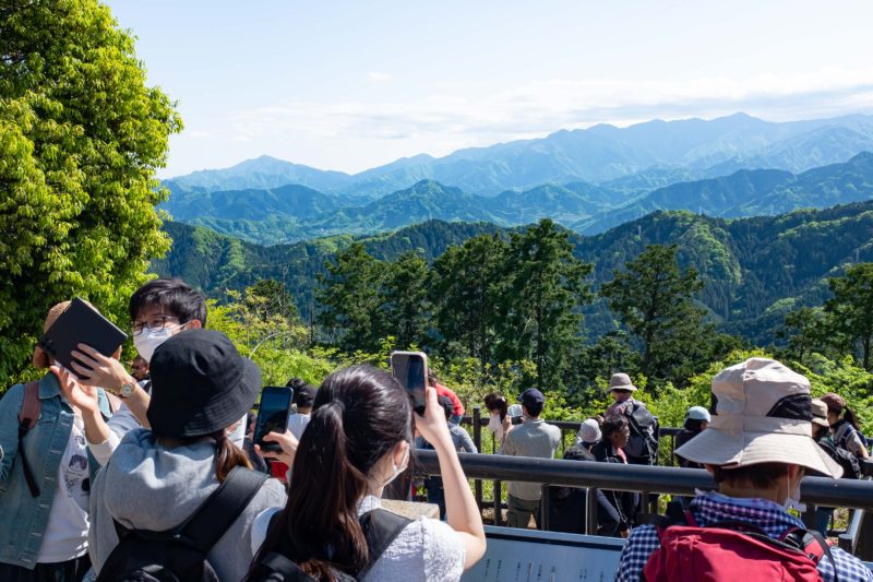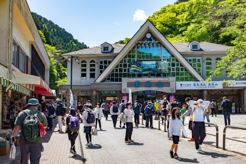高尾山といえば東京から行ける一番身近なプチ登山ですが、私のような軟弱者は麓から歩いて登る選択はまず選びませんね。ケーブルカーもしくはリフトという文明の力が揃っていますから今回はリフトを利用。これにて登山全体の3/4くらいは自動化され、残りの1/4を自らの足で歩けば頂上に辿り着けます。