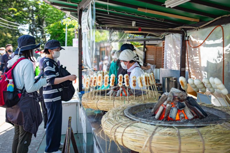ケーブルカーやリフトを降りて5分も歩かないうちにこのような誘惑が待ち構えています。高尾山といえば団子が有名ですね。みたらしとかではなく味噌ダレで頂く焼き団子。実は今回高尾山を目指した最大の理由はこれ。よし今日は団子を食べに行こう!って。登山より食べ物有きで動く我が家。