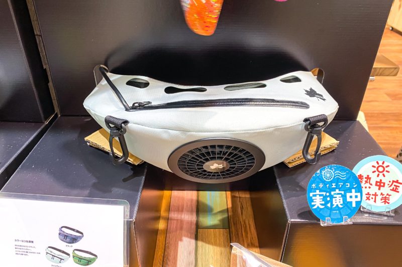 先日埼玉方面のショッピングモールを訪れたところ、施設内にアウトドアブランドのLOGOSショップが入っているのを見つけ立ち寄ってみました。するとこんな魅力的なアイテムが。ウエストポーチタイプの扇風機!