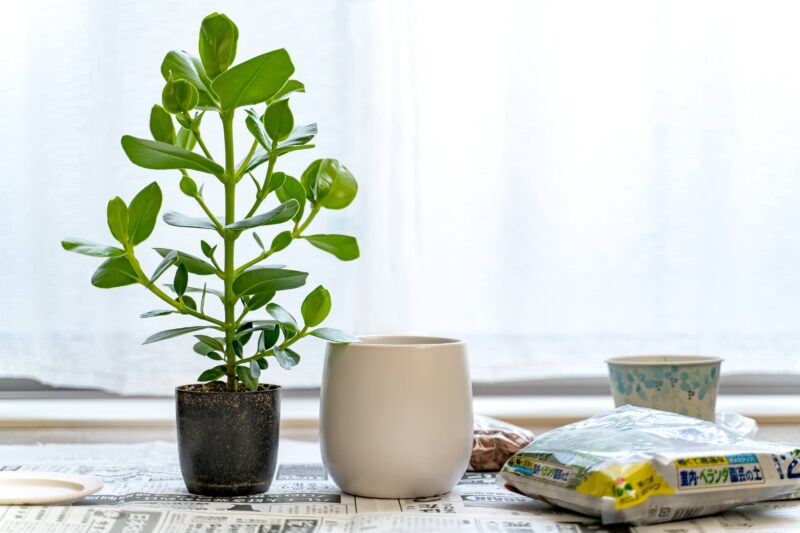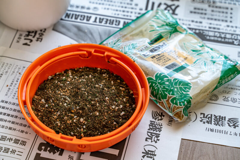 今回使用するのは自宅に余っていた ”花ごころ” というメーカーの ”室内ベランダ園芸の土” に ”大宮グリーンサービス” の ”ちょこっとミニ観葉植物の土” をブレンドしたもの。