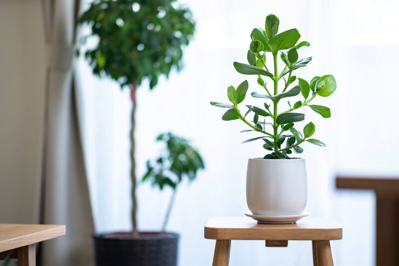 ちなみにこちらの写真が今年2月に購入した直後のもの。上で紹介した黒い植木鉢に化粧鉢を被せていても成立するくらいの手のひらサイズ。クルシア・ロゼアは成長速度が比較的遅いと言われていたので油断していたらグングン成長して今では背丈が35cmほどに。