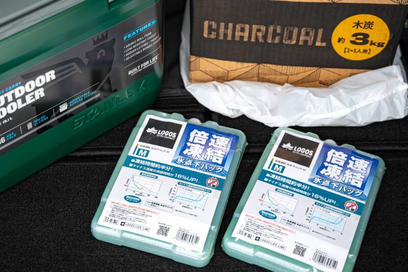 ロゴスの保冷剤、この倍速タイプは冷凍後−10℃近くをキープするらしく(もっとすごい−16℃タイプも存在する)キャンプ用の保冷剤としては定番のようで、今回購入したスタンレーのクーラーボックスにはMサイズ2個を並べると丁度良い収まり具合。欠点があるとすればこの保冷剤を凍らせるのに24時間もかかってしまう事(−16℃タイプは48時間)。