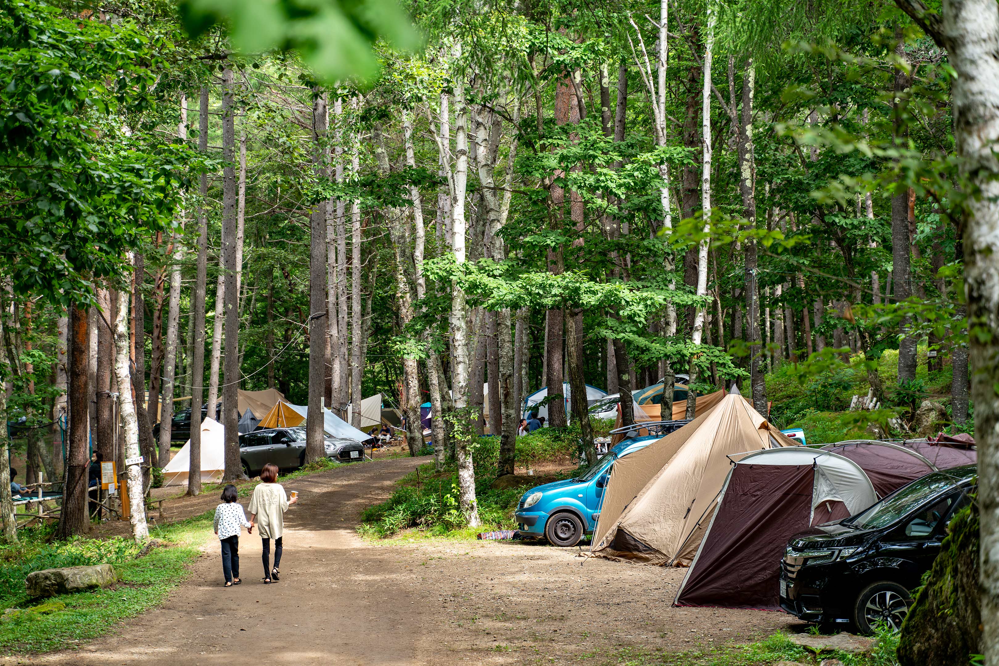 みずがき山森の農園キャンプ場の朝。前日の曇天は涼しかったけれどやはりキラキラした光が降り注ぐ森林はとても気持ちが良いです。特にここは白樺が沢山植わっているので見た目にも清々しさが倍増です。