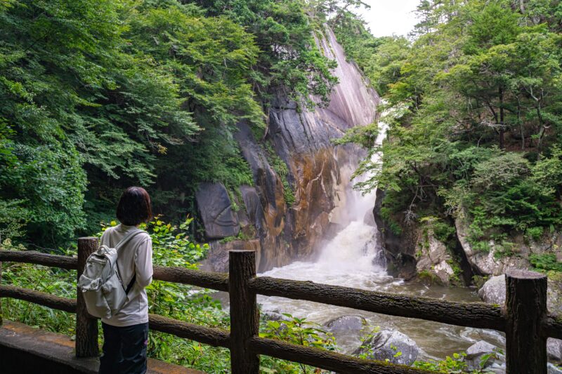 昇仙峡には綺麗な川が流れている...という事は滝もある。前日が雨だったのかこの日はかなり水量が多めで、あの滝に落ちたら命はないだろうと思うくらいでした。