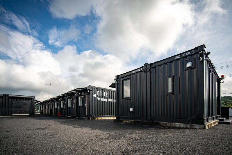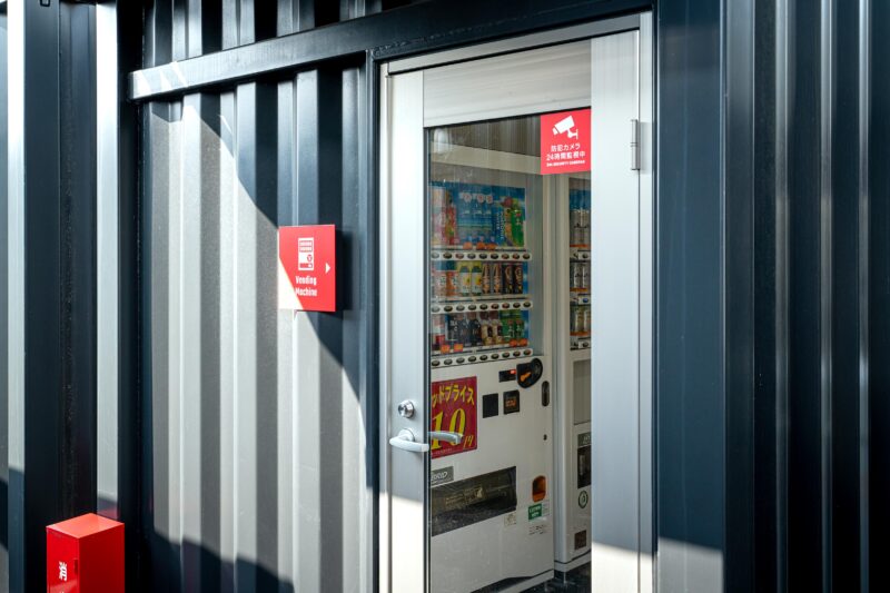 自動販売機はこれまた専用のコンテナボックスが準備されています。それ以外にコインランドリーのコンテナ棟もありました。こうしてみると普通のビジネスホテルをそのままコンテナボックスで作り上げた!そういうコンセプトなのですね。