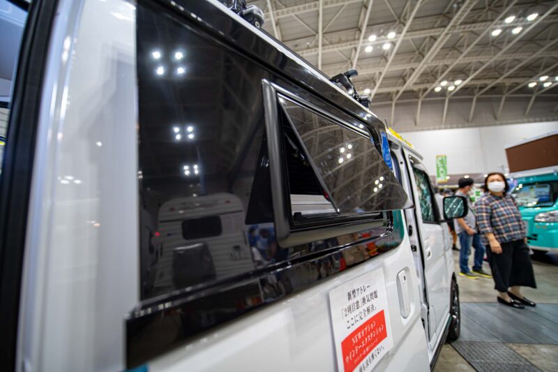 こちらマリナRVというメーカーのダイハツアトレーベースのデモカー。2台展示されていたうちの1台。