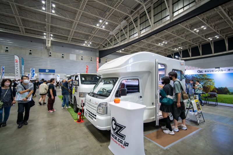 世の中的には軽トラベースのキャンピングカーは増加傾向にあると思いますが、会場内では数える程度しか展示がなかったためか結構注目を浴びていました。