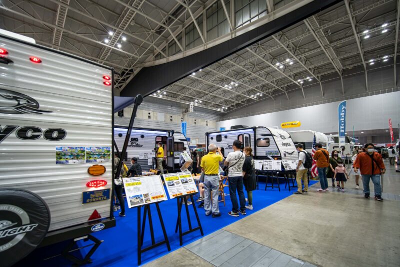 会場内にはキャンピングカーだけでなくキャンプグッズや車中泊グッズの出店もあります。車は購入できなくてもこれらのグッズくらいならすぐにでも買えそうで、私は結構楽しみなエリアです。