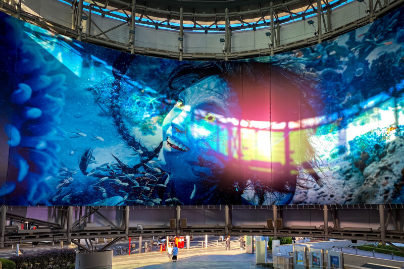 映画アバターの1シーンですが、ちょうどそこへ西陽が差し込んでいてうまい具合に映画キャラクターの目の位置を横切る形でパノラミックにシルエットを作っていて、その形だけ見れば映画フィルムのパーフォトレーションを再現しているかのよう。とても綺麗でした。