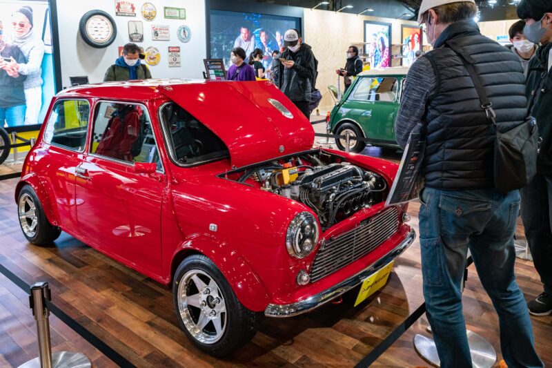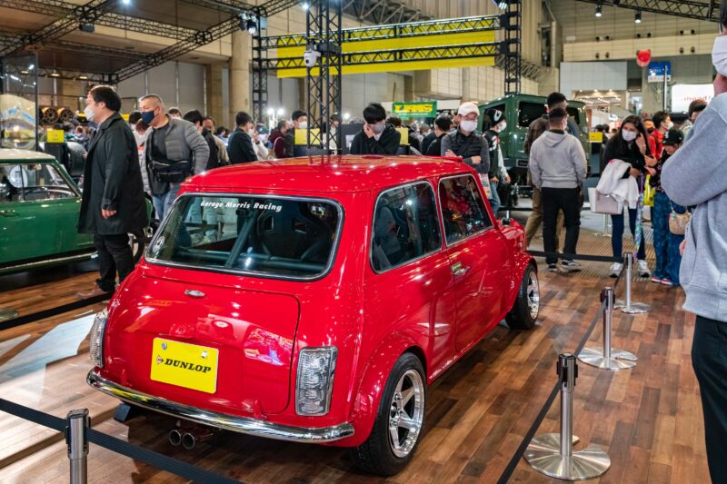 ダンロップのブースに展示されていたと記憶していますが、この車のリアウィンドウにはガレージモーリスのロゴが。なるほどMINI専門店のモーリスならこれくらいの仕上がりは当然でしょうね。