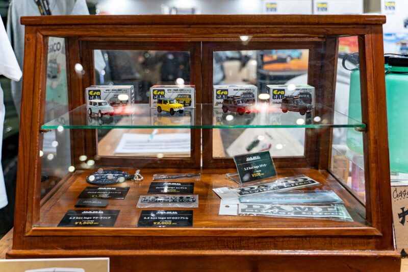 実は今回のイベント会場でDAMDさんからジムニーのミニカーが発売されるとの噂が事前にWEB上で広まっていました。私もその情報はキャッチしていましたのでオリジナルグッズ販売エリアをチェックしてみると、ありました!。それも純正ジムニーのミニカーではなく、DAMDさんのコンプリートカーをミニカー化したものですからルーフキャリアがついていたりフロントグリルが変更されていたりで可愛いのです。