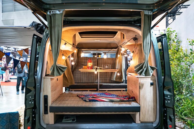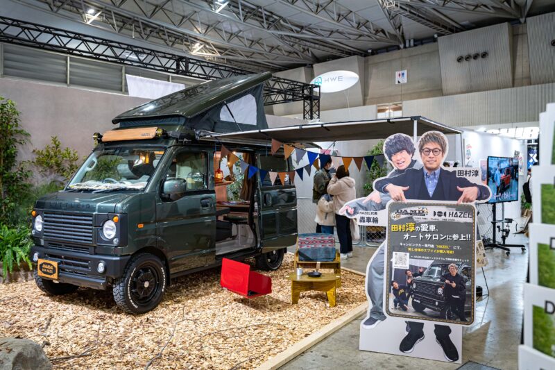 田村淳さんは確か同会場内にマイカーのテスラも展示していたはずですが、こちらはスズキエブリーベースのキャンピングカーですね。お金持ちは複数台のマイカーを所有してこんなふうに色んなスタイルで遊べるのですから羨ましい限りです。