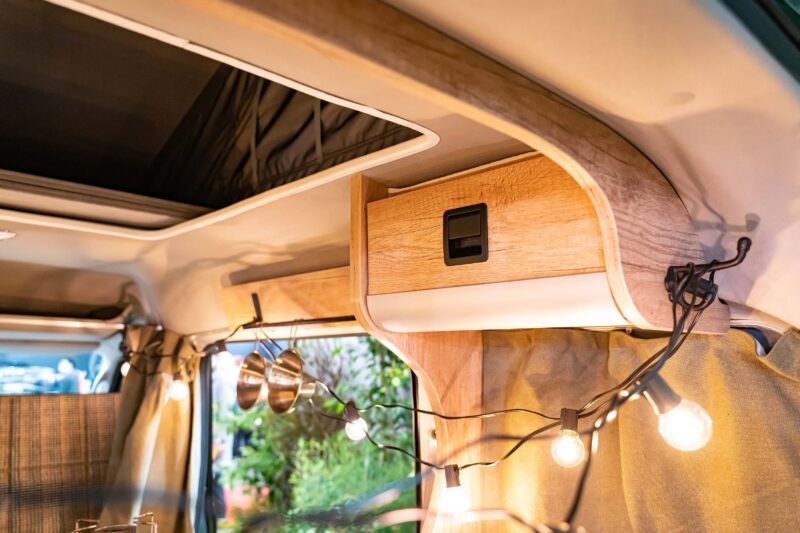 ルーフテント仕様ですから屋根の上に寝る前提ですが、仮にルーフテント無し仕様だとしても車内スペースの使い方はかなり効率的で広々見えますね。床下収納もありますし。これであれば車内で大柄の大人が座っても頭がルーフに当たってしまう事は無さそう。