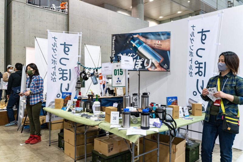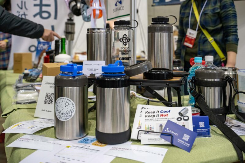 ナルゲンボトル用真空断熱ステンレスケースを販売する会社も出展していました。ナルゲンボトル用アイテムだけで勝負に出るくらいですからそれくらいこのボトルは市場シェアをとっているのでしょうね。