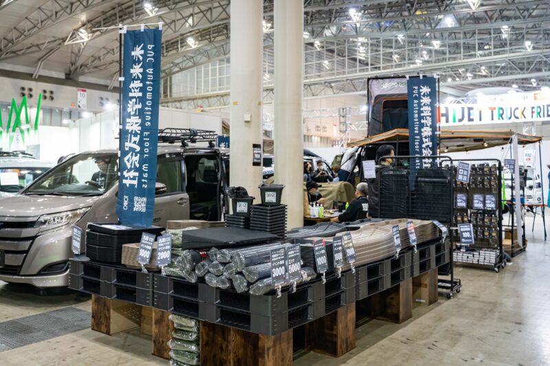 未来科学株式会社さんのブース。カーマット、シートクッション、ハンドルカバーなどを得意とする会社のようで一見地味なようですがあると便利なアイテムをリリースしている会社。