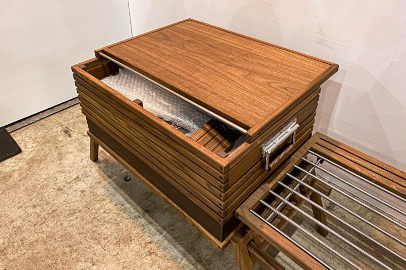 上に載せてある蓋はパカっと外してしまうことも可能ですが、滑らかにスライドさせることも出来、そのあたりにユニークと名づける理由があるのかな?と感じました。ここまでくると高級家具みたいでとてもキャンプに使おうなどとは思えませんね。