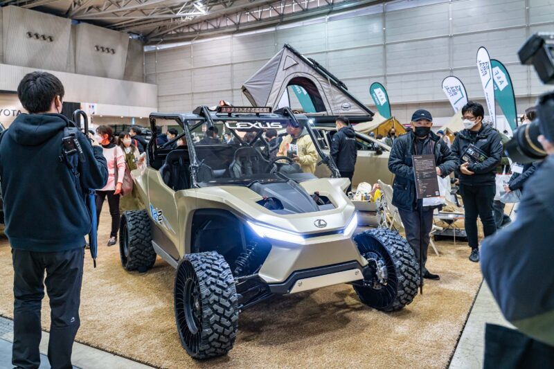 アウトドアショーなのに何故かレクサスが出展。そしてこちらの車はいったい何だ? どうやらこの車はレクサスが放つアウトドア向けのコンセプトカーらしく、カーボンニュートラルの観点から開発された水素エンジンを搭載するバギー的な位置付け。