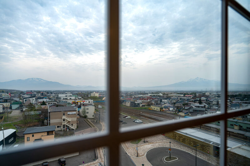 この日の宿泊は知床を目前にした斜里という町に手配していました。部屋の窓からは先ほど紹介した斜里岳の他、左手には海別岳も同時に眺める事が出来ました。大変良いロケーションですね。