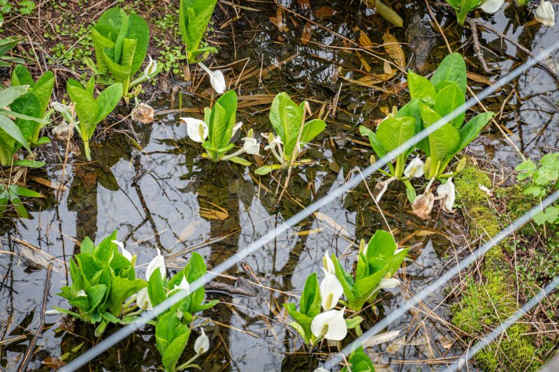 知床に限ったことではありませんが今回の旅では湿原っぽくジメジメした湿地帯にはあちこちに水芭蕉の花が咲いていました。丁度良い時期のようでまさに咲き始めといった感じ。写真ではごく一部しか撮影していませんが、ドライブの途中で見た群生は水芭蕉で有名な尾瀬など比にならないくらいの規模でした。やはり凄いですね北海道の自然は。