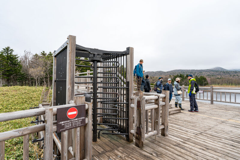 ここに来て毎回思うのですが大自然の中にこの回転ゲートは如何なものかと。必要性を考えれば確かにこれ以外の方法は無いのでしょう。クマ出没に備えインストラクターの説明を受けた人のみがこの先に進めるとか、実際クマが出たとしてもこのゲートを通り抜けられないようにとか。でもちょっと自然との調和という意味で存在感が凄いんですよね。