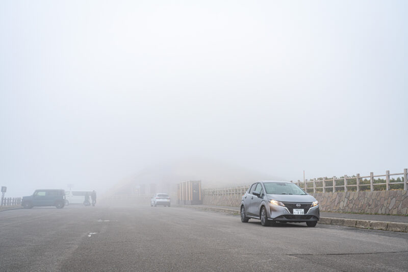 銀世界の知床峠を写真に収めようにもこの霧では道路脇に車を停めるのも危険でしたので、こちらのパーキングに停車。銀世界は写すことが出来ず単なる霧の駐車場の画になってしまいました。