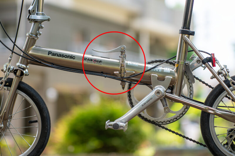 そんなトレンクル、折りたたみ時にフレームを展開するためのレバーの方向が以前より気になっており、購入当初は走行時のレバーの方向は後ろ向きだったところいつの間にか180度回転してしまって、前方進行方向へ倒れた状態でロック状態となってしまっていました。