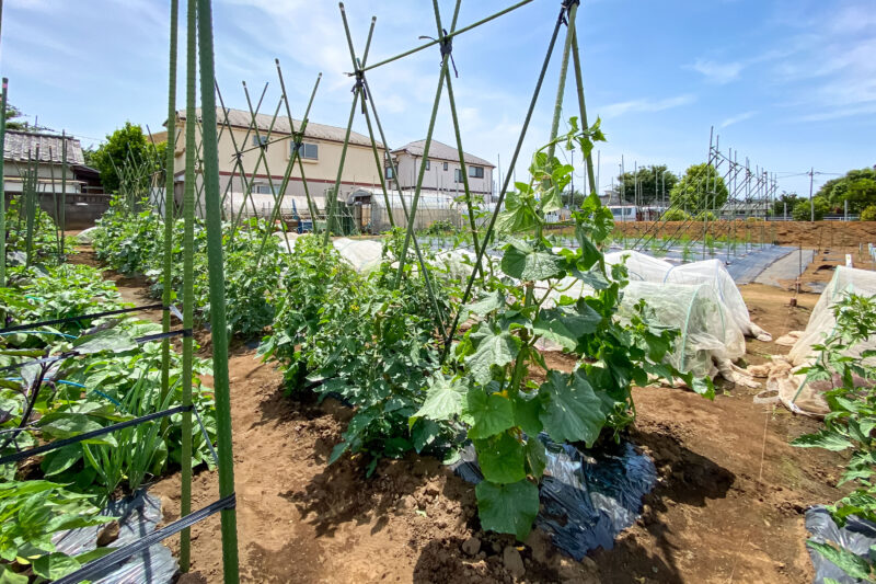 東京にも市民農園や体験農園は所々見かけますが、こんなにビシッと綺麗に整列された畑は珍しいですね。
