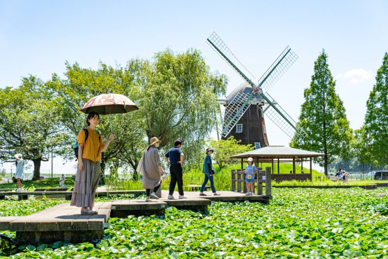 千葉県は風車発祥の地!というわけではないと思いますが、昨年訪れた佐倉市の風車のひまわりガーデンにも似たような巨大風車がありましたね。西洋の雰囲気が公園の景観をグッと引き締めてくれてとても良いランドマークになっています。