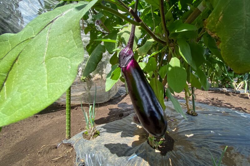 ナスは順調に収穫が続いています。秋ナス収穫のために7月中に強剪定(一旦大きく剪定をして若い枝葉を作り直させる作業)をするという選択もありましたが、我が家はこのまま夏ナスのまま木を更に大きく育てて秋ナスにまで続けていきます。