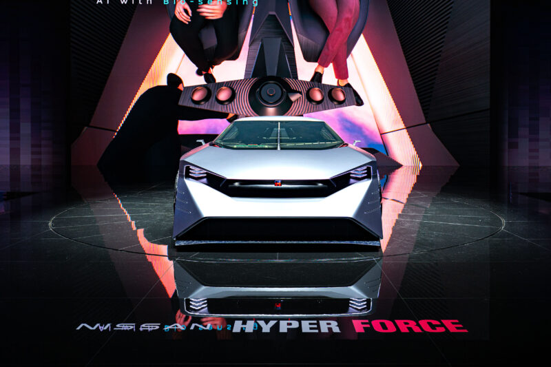 そんな日産ブース、今回のメインステージは未来のGT-Rのようなコンセプトカーが注目を集めておりました。コンセプトだから仕方がありませんが、定規で書いたようなまっすぐなラインの造形は映画の中に登場しそうなシルエットで到底これが市販化されるとは思えませんが、逆にこの形から未来のGT-Rっぽさを想像させるのはデザインの力でしょうか。